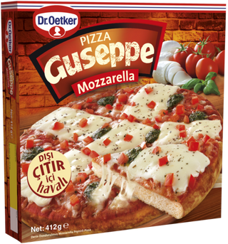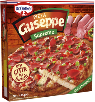 Dr. Oetker Pizza Guseppe, mükemmel lezzetinin sırrını eşi benzeri olmayan, içi yumuşacık ve havalı, dışı çıtır çıtır hamurundan; birbiri ile uyumlu üst malzemeleri ve aromatik baharatlarından alıyor. Bol malzemesi ile eşsiz lezzetli Dr. Oetker Pizza Guseppe çok doyurucu... Dr. Oetker Pizza Guseppe’de her şey bir arada! Özel hamuru ve bol malzemesi ile Pizza Guseppe herkes için eşsiz bir lezzet: ister kendiniz, ister aileniz, isterseniz de arkadaşlarınız için mükemmel bir seçim.